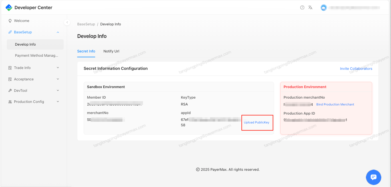 Visit the PayerMax Developer Center and register as a developer using your email address.
