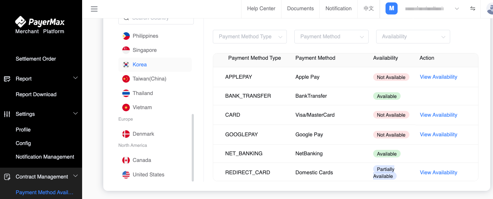 Login to PayerMax Developer Center, go to → , you can enable or disable the payment methods available for the current account.